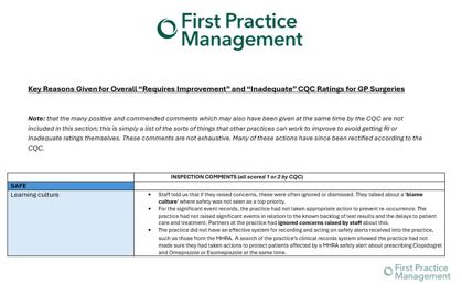 Safe and effective staffing: this again was one of the most common areas that practices scored poorly. In one practice, no proof of identity checks were seen in 5 staff files reviewed by CQC and only 1 staff file had evidence of references obtained prior to starting employment. Elsewhere, some reception staff were completing clinical triage with no formal training - and this was consistent with patient complaints that they were told by non-clinical staff that their test results looked fine when they were not.